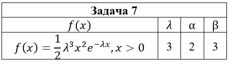 • Задача 7. Непрерывная случайная величина ξ имеет плотность вероятности f(x). Требуется : 1) найти ее функцию распределения F(x) ; 2) построить графики функции распределения F(x) и плотности вероятности f(x); 3) вычислить вероятность попадания случайной величины в интервал (α;β); 4) найти математическое ожидание, дисперсию и среднеквадратическое отклонение случайной величины ξ .