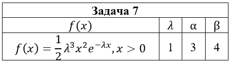 • Задача 7. Непрерывная случайная величина ξ имеет плотность вероятности f(x). Требуется : 1) найти ее функцию распределения F(x) ; 2) построить графики функции распределения F(x) и плотности вероятности f(x); 3) вычислить вероятность попадания случайной величины в интервал (α;β); 4) найти математическое ожидание, дисперсию и среднеквадратическое отклонение случайной величины ξ .