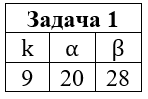 • Задача 1. Одновременно подбрасывают две игральные кости. В вариантах 1-10 найти вероятность того, что сумма выпавших очков: 1) равна k; 2) меньше k+1; 3) больше k-1; 4) заключена в промежутке [α;β]. В вариантах 11-30 найти вероятность того, что произведение выпавших очков: 1) равна k; 2) меньше k+1; 3) больше k-1; 4) заключена в промежутке [α;β].