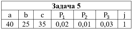 • Задача 5. На склад поступили детали, изготовляемые на трех станках. Изготовлено на станках деталей, %: на первом - a, на втором - b, на третьем - c. Вероятность выпуска бракованных деталей на i-м станке равна Pi (i=1,2,3). Определить вероятность того, что изделие, наудачу взятое со склада 1) оказалась бракованным; 2) оказалось небракованным. Найти вероятность того, что она изготовлена на j-м станке.