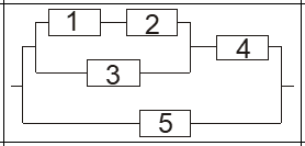 • Задача 3. Задана электрическая схема системы, состоящей из пяти элементов. Событие Аi - отказ i-го элемента за некоторый промежуток времени. Вероятности безотказной работы элементов заданы: P(Ai)=0,95; i=1,3,5; P(Aj)=0,95; j=2,4. Событие А состоит в безотказной работе всей системы за рассматриваемый промежуток времени. Требуется: 1) выразить событие А через Ai или Аi (i=1,2,3,4,5); 2) найти вероятность P(A) безотказной работы системы.