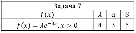 • Задача 7. Непрерывная случайная величина ξ имеет плотность вероятности f(x). Требуется : 1) найти ее функцию распределения F(x) ; 2) построить графики функции распределения F(x) и плотности вероятности f(x); 3) вычислить вероятность попадания случайной величины в интервал (α;β); 4) найти математическое ожидание, дисперсию и среднеквадратическое отклонение случайной величины ξ .