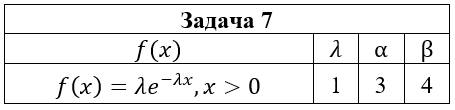 • Задача 7. Непрерывная случайная величина ξ имеет плотность вероятности f(x). Требуется : 1) найти ее функцию распределения F(x) ; 2) построить графики функции распределения F(x) и плотности вероятности f(x); 3) вычислить вероятность попадания случайной величины в интервал (α;β); 4) найти математическое ожидание, дисперсию и среднеквадратическое отклонение случайной величины ξ .