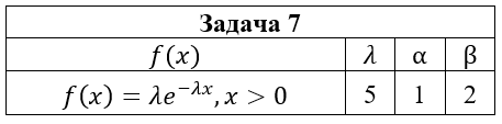 • Задача 7. Непрерывная случайная величина ξ имеет плотность вероятности f(x). Требуется : 1) найти ее функцию распределения F(x) ; 2) построить графики функции распределения F(x) и плотности вероятности f(x); 3) вычислить вероятность попадания случайной величины в интервал (α;β); 4) найти математическое ожидание, дисперсию и среднеквадратическое отклонение случайной величины ξ .