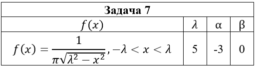 • Задача 7. Непрерывная случайная величина ξ имеет плотность вероятности f(x). Требуется : 1) найти ее функцию распределения F(x) ; 2) построить графики функции распределения F(x) и плотности вероятности f(x); 3) вычислить вероятность попадания случайной величины в интервал (α;β); 4) найти математическое ожидание, дисперсию и среднеквадратическое отклонение случайной величины ξ .