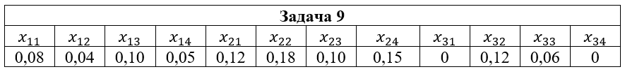 • Задача 9. Дана система двух случайных величин (ξ,η), закон распределения которой задан таблицей, где x1=2; x2=3; x3=5; y1=-1; y2=0; y3=1; y4=2. Найти: 1) законы распределения случайных величин ξ и η; 2) математические ожидания и дисперсии случайных величин ξ и η; 3) коэффициент корреляции rξη; 4) условные распределения Pξ(xi|y2); Pη(yi|x2); 5) условные математические ожидания M(ξ|y2); M(η|x2).