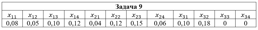 • Задача 9. Дана система двух случайных величин (ξ,η), закон распределения которой задан таблицей, где x1=2; x2=3; x3=5; y1=-1; y2=0; y3=1; y4=2. Найти: 1) законы распределения случайных величин ξ и η; 2) математические ожидания и дисперсии случайных величин ξ и η; 3) коэффициент корреляции rξη; 4) условные распределения Pξ(xi|y2); Pη(yi|x2); 5) условные математические ожидания M(ξ|y2); M(η|x2).