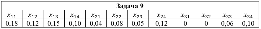 • Задача 9. Дана система двух случайных величин (ξ,η), закон распределения которой задан таблицей, где x1=2; x2=3; x3=5; y1=-1; y2=0; y3=1; y4=2. Найти: 1) законы распределения случайных величин ξ и η; 2) математические ожидания и дисперсии случайных величин ξ и η; 3) коэффициент корреляции rξη; 4) условные распределения Pξ(xi|y2); Pη(yi|x2); 5) условные математические ожидания M(ξ|y2); M(η|x2).