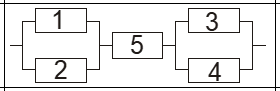 • Задача 3. Задана электрическая схема системы, состоящей из пяти элементов. Событие Аi - отказ i-го элемента за некоторый промежуток времени. Вероятности безотказной работы элементов заданы: P(Ai)=0,95; i=1,3,5; P(Aj)=0,95; j=2,4. Событие А состоит в безотказной работе всей системы за рассматриваемый промежуток времени. Требуется: 1) выразить событие А через Ai или Аi (i=1,2,3,4,5); 2) найти вероятность P(A) безотказной работы системы.