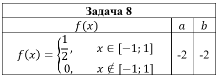 • Задача 8. Дана плотность вероятности f(x) случайной величины ξ. Случайная величина η связана со случайной величиной ξ функциональной зависимостью η=aξ2+b. Найти: 1) математическое ожидание и дисперсию случайной величины η, используя плотность вероятности случайной величины ξ; 2) плотность вероятности случайной величины η и построить ее графики; 3) математическое ожидание и дисперсию случайной величины η, используя найденную плотность вероятности случайной величины η.