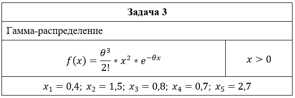 • Задача 3. Найти методом максимального правдоподобия по выборке x1,x2..xn точечную оценку параметра для плотности распределения.