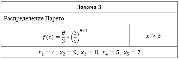 • Задача 3. Найти методом максимального правдоподобия по выборке x1,x2..xn точечную оценку параметра для плотности распределения.