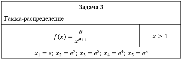 • Задача 3. Найти методом максимального правдоподобия по выборке x1,x2..xn точечную оценку параметра для плотности распределения.