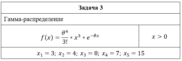 • Задача 3. Найти методом максимального правдоподобия по выборке x1,x2..xn точечную оценку параметра для плотности распределения.