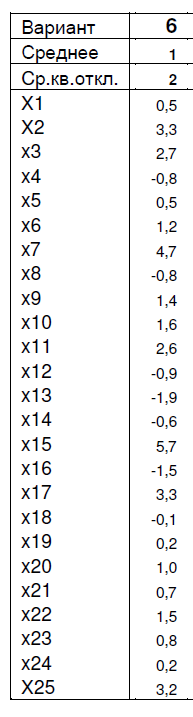 • Задача 4. Выборка Х1,...,Х25 получена из нормального распределения. Найти симметричные доверительные интервалы с уровнем доверия γ=0,95 для среднего значения и дисперсии (используя информацию об известном втором параметре и не используя эту информацию).