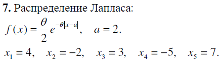 • Задача 3. По выборке x1,x2..xn найти общий вид оценки максимального правдоподобия и подсчитать ее конкретное значение для приведенных данных: