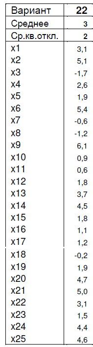 • Задача 4. Выборка Х1,...,Х25 получена из нормального распределения. Найти симметричные доверительные интервалы с уровнем доверия γ=0,95 для среднего значения и дисперсии (используя информацию об известном втором параметре и не используя эту информацию).