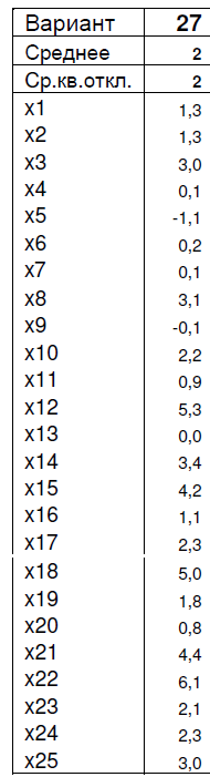 • Задача 4. Выборка Х1,...,Х25 получена из нормального распределения. Найти симметричные доверительные интервалы с уровнем доверия γ=0,95 для среднего значения и дисперсии (используя информацию об известном втором параметре и не используя эту информацию).
