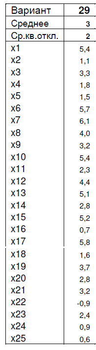 • Задача 4. Выборка Х1,...,Х25 получена из нормального распределения. Найти симметричные доверительные интервалы с уровнем доверия γ=0,95 для среднего значения и дисперсии (используя информацию об известном втором параметре и не используя эту информацию).