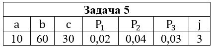 • Задача 5. На склад поступили детали, изготовляемые на трех станках. Изготовлено на станках деталей, %: на первом - a, на втором - b, на третьем - c. Вероятность выпуска бракованных деталей на i-м станке равна Pi (i=1,2,3). Определить вероятность того, что изделие, наудачу взятое со склада 1) оказалась бракованным; 2) оказалось небракованным. Найти вероятность того, что она изготовлена на j-м станке.