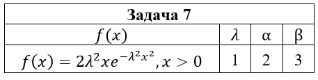 • Задача 7. Непрерывная случайная величина ξ имеет плотность вероятности f(x). Требуется : 1) найти ее функцию распределения F(x) ; 2) построить графики функции распределения F(x) и плотности вероятности f(x); 3) вычислить вероятность попадания случайной величины в интервал (α;β); 4) найти математическое ожидание, дисперсию и среднеквадратическое отклонение случайной величины ξ .