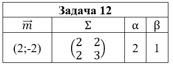 • Задача 12. Случайный вектор (ξ,η) распределен по нормальному закону N(m;Σ). Выписать функцию плотности pξ,η(x,y) и найти: 1) маргинальные плотности pξ(x) и pη(y); 2) условные плотности pξ(x|y) и pη(y|x); 3) коэффициент корреляции ρξ,η; 4) плотность случайной величины ζ=αξ+βη. Построить графики найденных функций и эллипсы рассеяния.