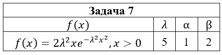 • Задача 7. Непрерывная случайная величина ξ имеет плотность вероятности f(x). Требуется : 1) найти ее функцию распределения F(x) ; 2) построить графики функции распределения F(x) и плотности вероятности f(x); 3) вычислить вероятность попадания случайной величины в интервал (α;β); 4) найти математическое ожидание, дисперсию и среднеквадратическое отклонение случайной величины ξ .