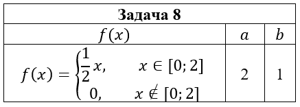 • Задача 8. Дана плотность вероятности f(x) случайной величины ξ. Случайная величина η связана со случайной величиной ξ функциональной зависимостью η=aξ2+b. Найти: 1) математическое ожидание и дисперсию случайной величины η, используя плотность вероятности случайной величины ξ; 2) плотность вероятности случайной величины η и построить ее графики; 3) математическое ожидание и дисперсию случайной величины η, используя найденную плотность вероятности случайной величины η.