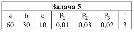 • Задача 5. На склад поступили детали, изготовляемые на трех станках. Изготовлено на станках деталей, %: на первом - a, на втором - b, на третьем - c. Вероятность выпуска бракованных деталей на i-м станке равна Pi (i=1,2,3). Определить вероятность того, что изделие, наудачу взятое со склада 1) оказалась бракованным; 2) оказалось небракованным. Найти вероятность того, что она изготовлена на j-м станке.