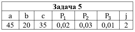 • Задача 5. На склад поступили детали, изготовляемые на трех станках. Изготовлено на станках деталей, %: на первом - a, на втором - b, на третьем - c. Вероятность выпуска бракованных деталей на i-м станке равна Pi (i=1,2,3). Определить вероятность того, что изделие, наудачу взятое со склада 1) оказалась бракованным; 2) оказалось небракованным. Найти вероятность того, что она изготовлена на j-м станке.