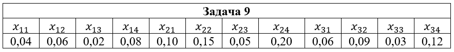 • Задача 9. Дана система двух случайных величин (ξ,η), закон распределения которой задан таблицей, где x1=2; x2=3; x3=5; y1=-1; y2=0; y3=1; y4=2. Найти: 1) законы распределения случайных величин ξ и η; 2) математические ожидания и дисперсии случайных величин ξ и η; 3) коэффициент корреляции rξη; 4) условные распределения Pξ(xi|y2); Pη(yi|x2); 5) условные математические ожидания M(ξ|y2); M(η|x2).