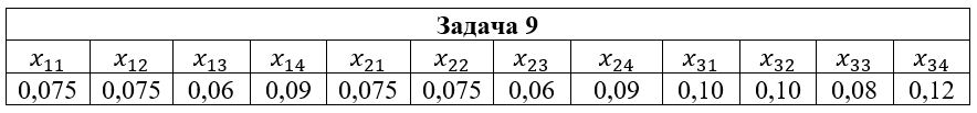 • Задача 9. Дана система двух случайных величин (ξ,η), закон распределения которой задан таблицей, где x1=2; x2=3; x3=5; y1=-1; y2=0; y3=1; y4=2. Найти: 1) законы распределения случайных величин ξ и η; 2) математические ожидания и дисперсии случайных величин ξ и η; 3) коэффициент корреляции rξη; 4) условные распределения Pξ(xi|y2); Pη(yi|x2); 5) условные математические ожидания M(ξ|y2); M(η|x2).