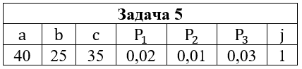 • Задача 5. На склад поступили детали, изготовляемые на трех станках. Изготовлено на станках деталей, %: на первом - a, на втором - b, на третьем - c. Вероятность выпуска бракованных деталей на i-м станке равна Pi (i=1,2,3). Определить вероятность того, что изделие, наудачу взятое со склада 1) оказалась бракованным; 2) оказалось небракованным. Найти вероятность того, что она изготовлена на j-м станке.