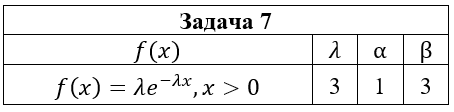 • Задача 7. Непрерывная случайная величина ξ имеет плотность вероятности f(x). Требуется : 1) найти ее функцию распределения F(x) ; 2) построить графики функции распределения F(x) и плотности вероятности f(x); 3) вычислить вероятность попадания случайной величины в интервал (α;β); 4) найти математическое ожидание, дисперсию и среднеквадратическое отклонение случайной величины ξ .