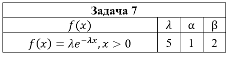 • Задача 7. Непрерывная случайная величина ξ имеет плотность вероятности f(x). Требуется : 1) найти ее функцию распределения F(x) ; 2) построить графики функции распределения F(x) и плотности вероятности f(x); 3) вычислить вероятность попадания случайной величины в интервал (α;β); 4) найти математическое ожидание, дисперсию и среднеквадратическое отклонение случайной величины ξ .
