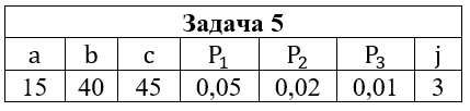 • Задача 5. На склад поступили детали, изготовляемые на трех станках. Изготовлено на станках деталей, %: на первом - a, на втором - b, на третьем - c. Вероятность выпуска бракованных деталей на i-м станке равна Pi (i=1,2,3). Определить вероятность того, что изделие, наудачу взятое со склада 1) оказалась бракованным; 2) оказалось небракованным. Найти вероятность того, что она изготовлена на j-м станке.