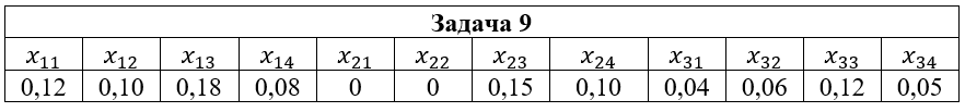 • Задача 9. Дана система двух случайных величин (ξ,η), закон распределения которой задан таблицей, где x1=2; x2=3; x3=5; y1=-1; y2=0; y3=1; y4=2. Найти: 1) законы распределения случайных величин ξ и η; 2) математические ожидания и дисперсии случайных величин ξ и η; 3) коэффициент корреляции rξη; 4) условные распределения Pξ(xi|y2); Pη(yi|x2); 5) условные математические ожидания M(ξ|y2); M(η|x2).