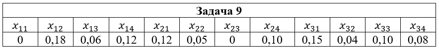 • Задача 9. Дана система двух случайных величин (ξ,η), закон распределения которой задан таблицей, где x1=2; x2=3; x3=5; y1=-1; y2=0; y3=1; y4=2. Найти: 1) законы распределения случайных величин ξ и η; 2) математические ожидания и дисперсии случайных величин ξ и η; 3) коэффициент корреляции rξη; 4) условные распределения Pξ(xi|y2); Pη(yi|x2); 5) условные математические ожидания M(ξ|y2); M(η|x2).