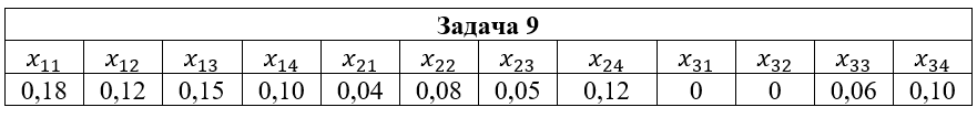• Задача 9. Дана система двух случайных величин (ξ,η), закон распределения которой задан таблицей, где x1=2; x2=3; x3=5; y1=-1; y2=0; y3=1; y4=2. Найти: 1) законы распределения случайных величин ξ и η; 2) математические ожидания и дисперсии случайных величин ξ и η; 3) коэффициент корреляции rξη; 4) условные распределения Pξ(xi|y2); Pη(yi|x2); 5) условные математические ожидания M(ξ|y2); M(η|x2).