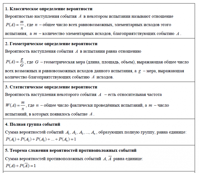 Лекции: Основные формулы теории вероятностей