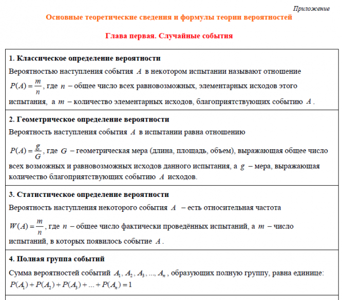 Лекции: Основные теоретические сведения и формулы теории вероятностей