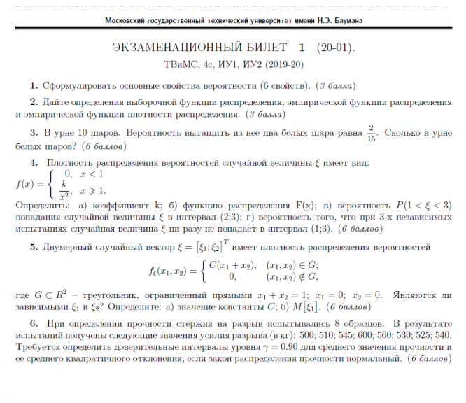 Для студентов МГТУ им. Н.Э.Баумана по предмету Теория вероятностей и математическая статистика (ТВиМС)билеты 2020 комплект 17 вариантовбилеты 2020 комплект 17 вариантов