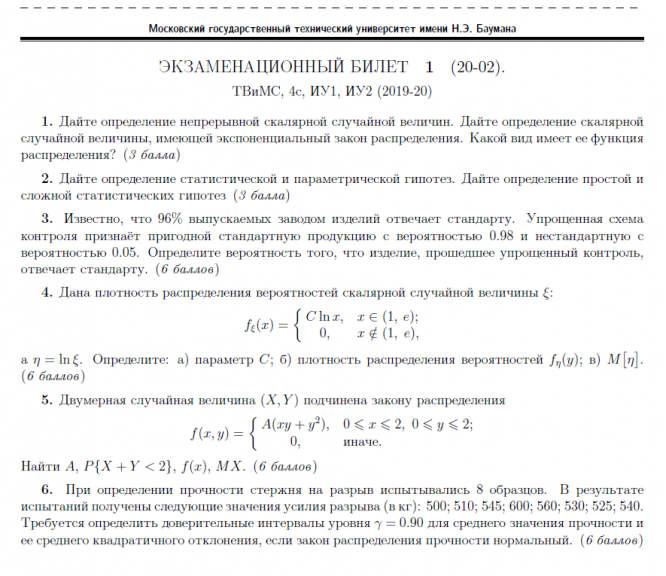 Для студентов МГТУ им. Н.Э.Баумана по предмету Теория вероятностей и математическая статистика (ТВиМС)билеты 2020 комплект №2 13 вариантовбилеты 2020 комплект №2 13 вариантов