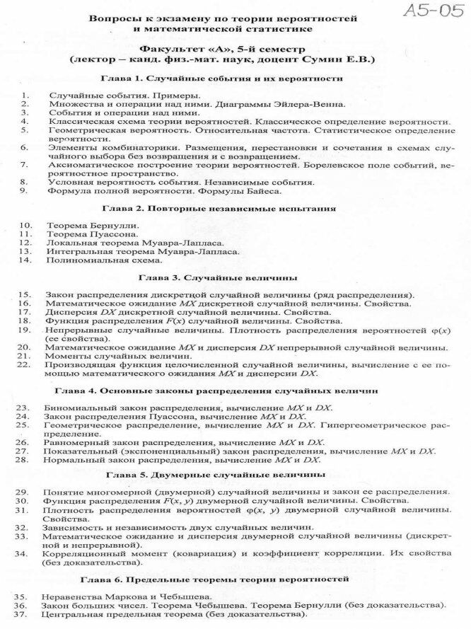 Для студентов НИЯУ МИФИ по предмету Теория вероятностей и математическая статистика (ТВиМС)Вопросы к экзамену по терверу и матстатуВопросы к экзамену по терверу и матстату