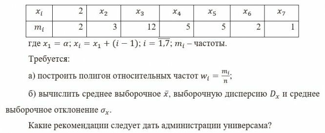 Администрацию универсама интересует оптимальный уровень запасов продуктов в торговом зале, а также среднемесячный объем продаж товаров, не являющихся предметом ежедневного потребления в семье (таких, например, как сода). Для выяснения этого вопроса менеджер универсама в течение месяца регистрировал продажи соды и представил результаты в виде дискретного вариационного ряда
