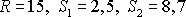 В круге радиуса R наудачу появляется точка. Определить вероятность того, что она попадает в одну из двух непересекающихся фигур, площади которых равны S1 и S2.