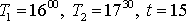 Моменты начала двух событий наудачу распределены в промежутке времени от T1 до T2. Одно из событий длится 10 мин., другое – t мин. Определить вероятность того, что: