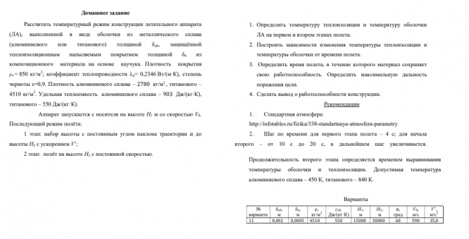 ДЗ: Расчет температурного режима ЛА вариант 11