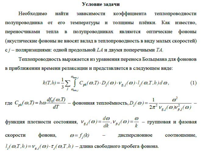 Для студентов МГТУ им. Н.Э.Баумана по предмету ТеплофизикаДомашнее задание №1 "Теплопроводность наноструктур" (вариант №12)Домашнее задание №1 "Теплопроводность наноструктур" (вариант №12)