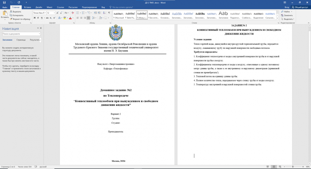 ТМО ДЗ2 - Конвективный теплообмен при вынужденном и свободном движении жидкости